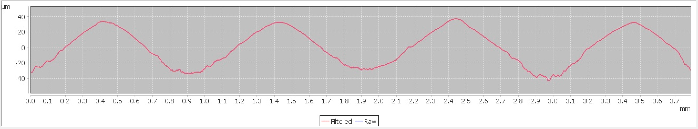 Ra - Roughness average: arithmetic average of the absolute values of the profile height deviations within the evaluation length measured from the mean line