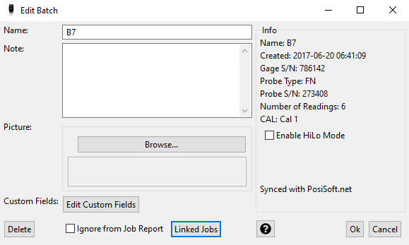 NOTE: If Enable Auto Sync with PosiSoft.net is checked, all batches related to the gage will synchronize automatically with PosiSoft.net.