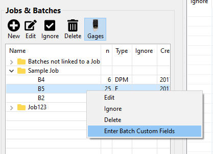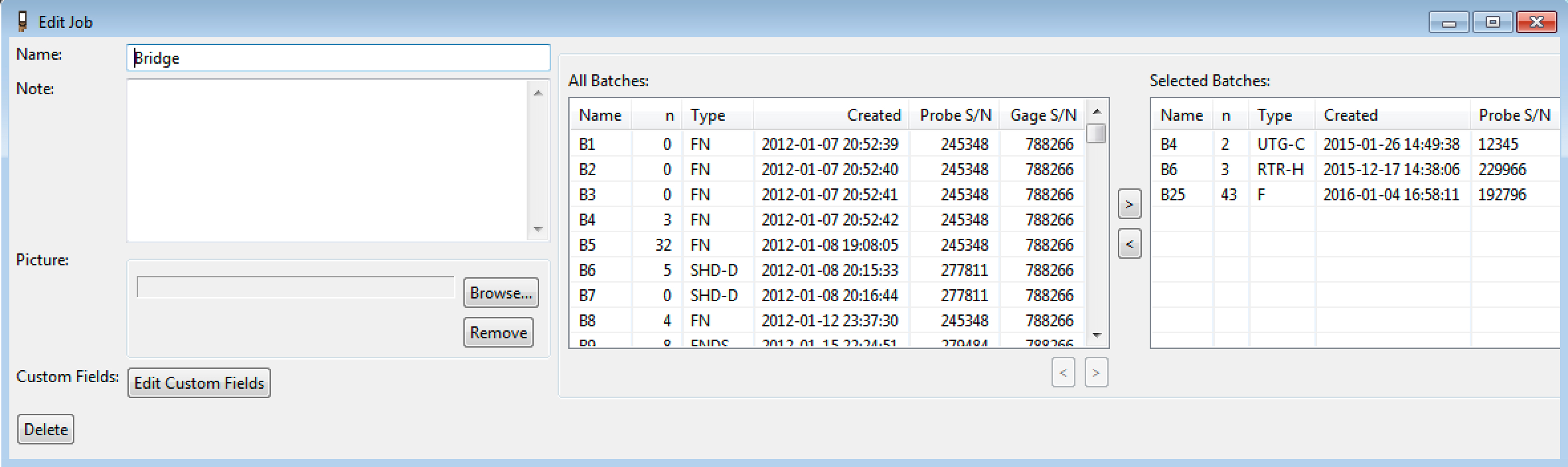 Jobs allow organization of one or more batches into a group. Jobs can include batches from multiple instruments and probe types. Double click on a job to display and edit its attributes (rename the job, add a picture and note, edit custom fields, add or remove batches).