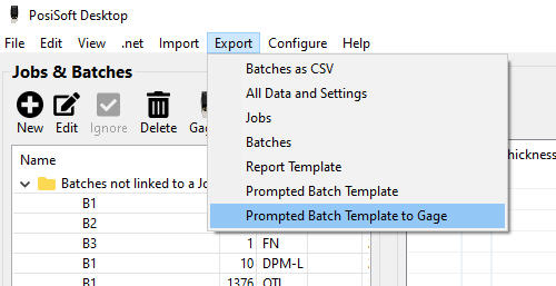 Export Prompted Batch Templates to your PosiTector Advanced gage.