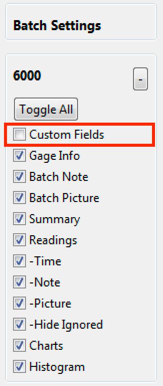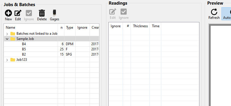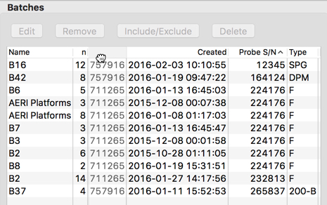 Select a batch to view a list of its contained readings. Double click on a batch to display and edit its attributes (rename the batch, add a picture and note, edit custom fields). See: Batches