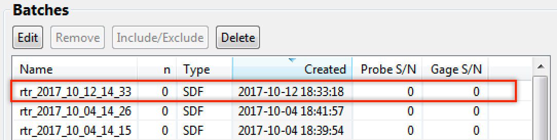 Import an SDF (Surface Data File) file (PosiTector RTR 3D Advanced instruments only). Imported SDF files will appear in the Batch list.
