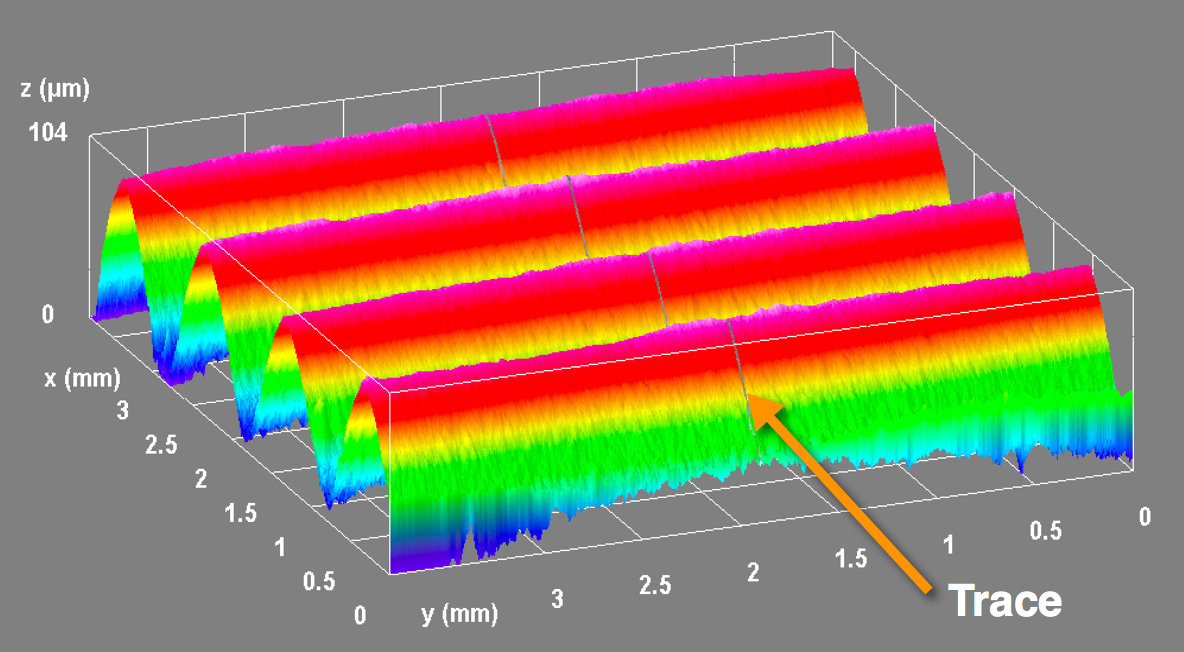 Sa - Average roughness: the arithmetic average of the absolute values of the measured height deviations from the mean surface taken within the evaluation area.